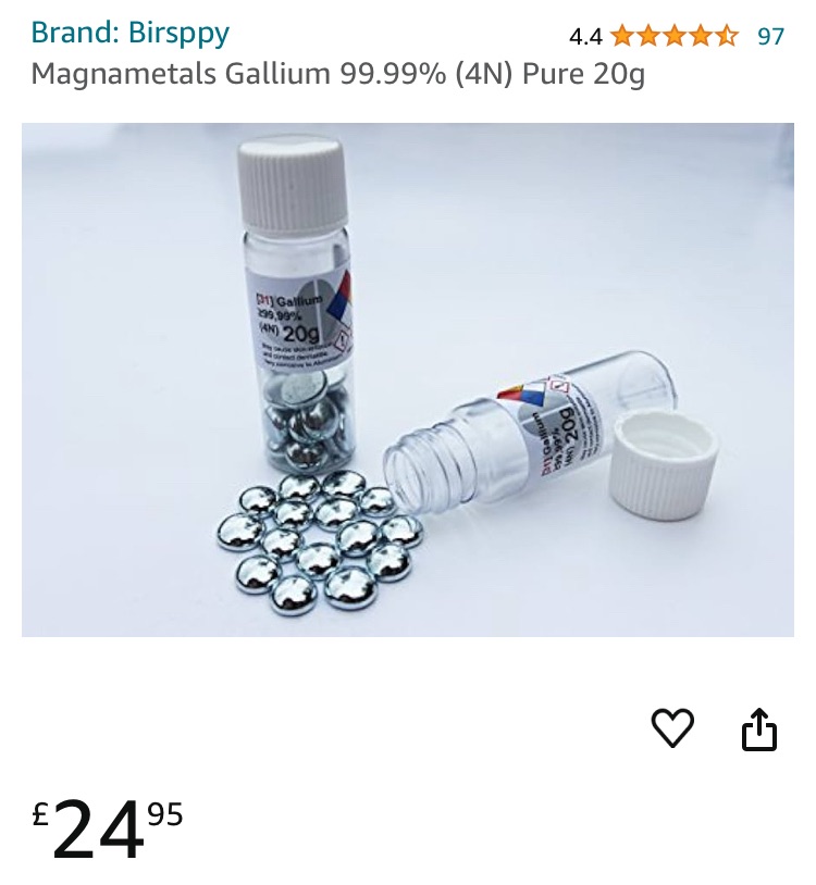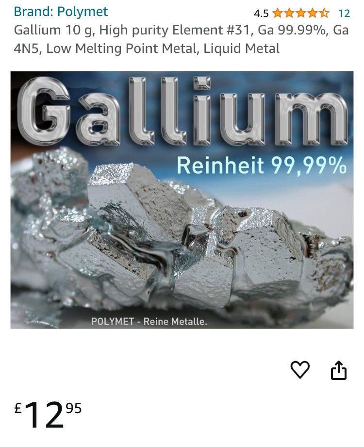 Magnametals Gallium 99.99% (4N) Pure 20g – £25